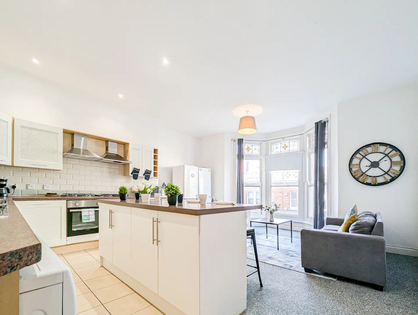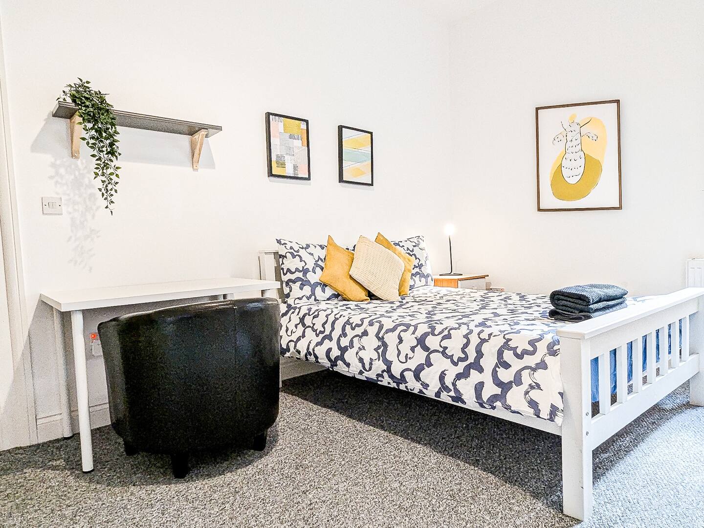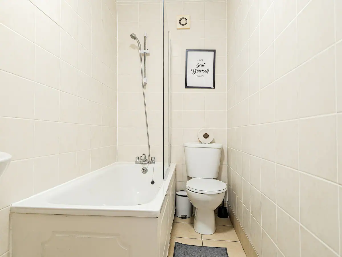 This is a good sized bedroom with a smart TV and desk in the centre of Southsea. The room is very clean and has been recently refurbished with everything you need for a comfortable stay. The house has fast fibre wireless internet. The TV has apps such as Netflix and Youtube. Towels and linen are provided. There are 4 bathrooms in the house. The large kitchen has 2 sinks, 2 ovens and 2 hobs. There are 2 x washing machines/dryers. There is a seating area with views over the main street.